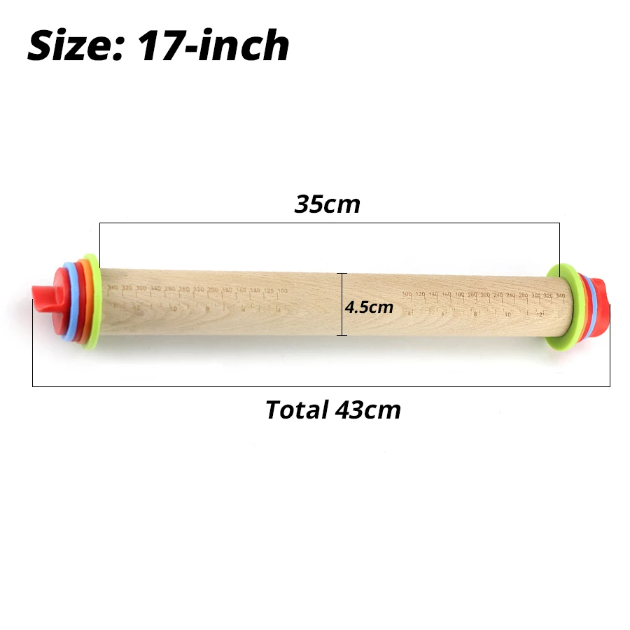 This adjustable wooden rolling pin by Leeseph is designed for precise and even dough rolling. Made from durable, smooth-finished wood for comfortable handling and long-term use. The removable rings allow you to easily control dough thickness for consistent results. Ideal for rolling cookie dough, pie crusts, pizza bases, and pasta sheets. The 17-inch length provides excellent leverage and balance while rolling. Perfect for both beginner bakers and experienced pastry chefs. The non-stick wooden surface helps prevent dough from tearing or sticking. Easy to clean with a simple wipe after use. Compact design makes storage simple in any kitchen drawer. A versatile and reliable baking tool for perfectly rolled dough every time.