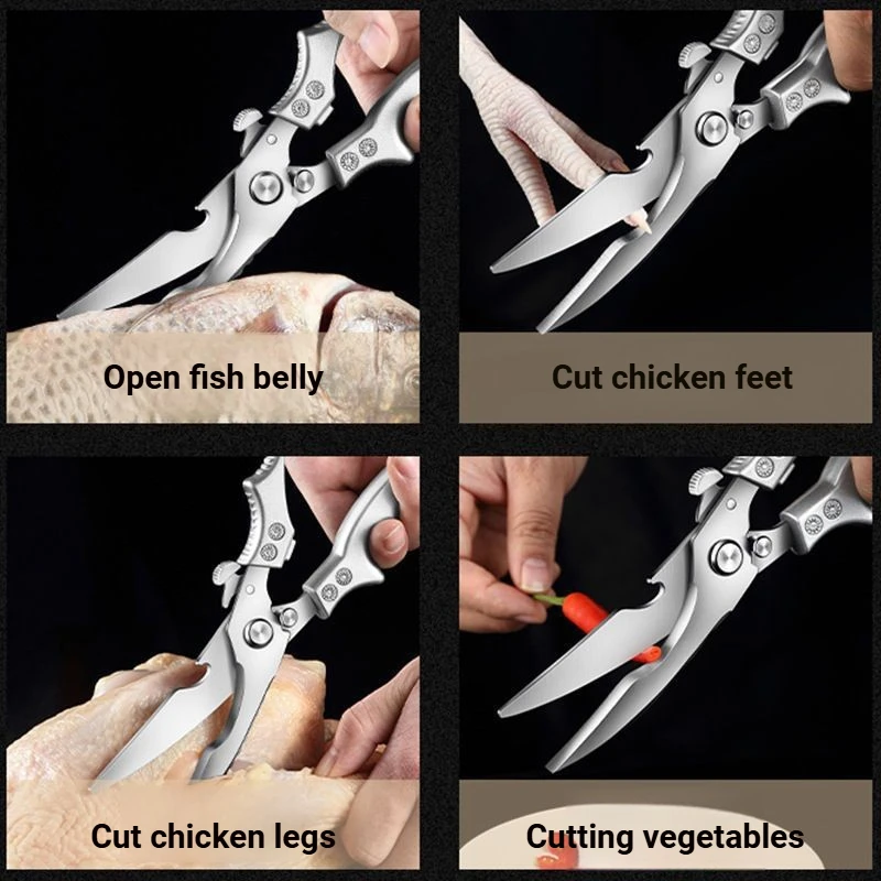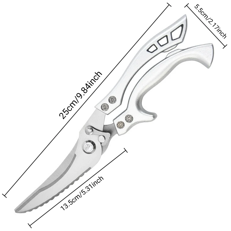 These heavy-duty kitchen scissors are designed for tough cutting tasks in the kitchen. Made from high-quality stainless steel, they offer strength and durability. Perfect for cutting poultry, fish, meat, and small bones with ease. The multifunctional design makes them a versatile kitchen tool. Sharp blades ensure clean and precise cuts every time. Comfortable handles provide a secure grip during use. The dishwasher-safe design allows easy and hygienic cleaning. Ideal for both home kitchens and professional cooking environments. Built to handle daily use without dulling quickly. A reliable and essential tool for efficient food preparation.
