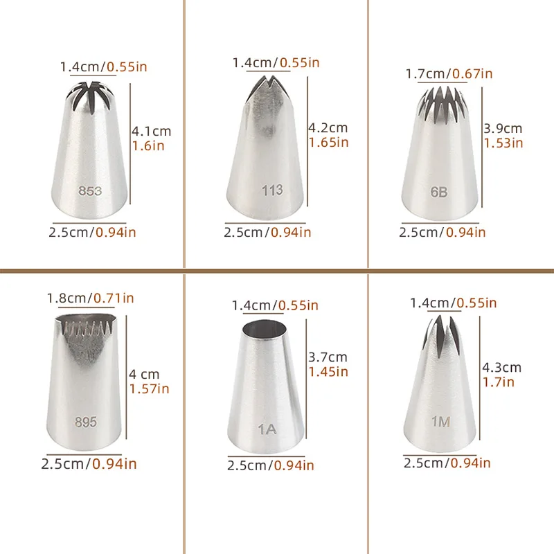 Welcome to Avant Guard Gourmet where baking creativity comes to life with quality tools. This 6pcs Metal Cream Decorating Tip Set is perfect for adding beautiful designs to cakes, cupcakes, and desserts. Made from durable stainless steel, each piping tip is rust-resistant and built for long-lasting use. The smooth edges ensure consistent piping for clean, professional-looking results. These decorating nozzles are ideal for frosting cupcakes, piping cookies, and creating elegant dessert details. Easy to use for both beginners and experienced bakers, they help elevate homemade treats effortlessly. The versatile tip designs allow you to create flowers, swirls, borders, and textured patterns. Cleaning is quick and simple—just rinse with warm water or place in the dishwasher. Compact and lightweight, this set stores easily in any kitchen drawer or baking kit. Upgrade your pastry tools with this essential decorating set and turn every dessert into a show-stopping creation.