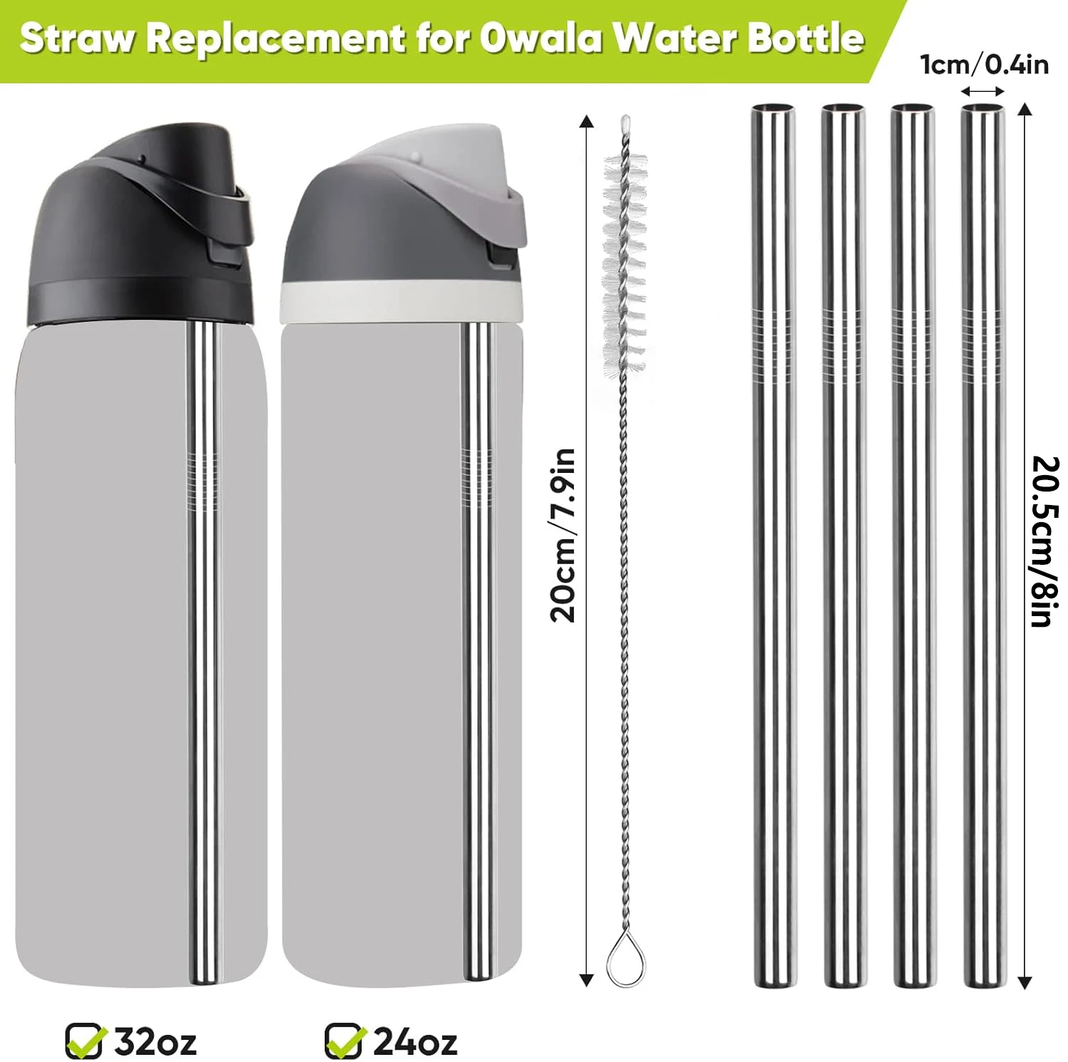 These metal replacement straws are designed for Owala water bottles in 24oz and 32oz sizes. Each set includes 2, 4, or 6 durable stainless steel straws. A cleaning brush is included for easy maintenance and hygiene. The reusable design helps reduce plastic waste and promotes eco-friendly living. The smooth stainless steel surface ensures safe and comfortable sipping. Perfect for water, smoothies, iced coffee, and other beverages. Compatible with most Owala bottle models for a secure fit. Lightweight and portable, ideal for home, office, or travel use. Easy to clean and dishwasher-safe for convenience. Upgrade your hydration routine with these stylish and practical replacement straws.